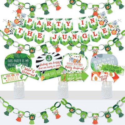 4.5 out of 5 stars. 5 out of 5 stars. See if you can spot a lion, zebra or giraffe. It's a perfect way to accent a safari baby shower! Jungle theme baby shower cakes make a wonderful centerpiece. 4.7 out of 5 stars 775. Swing through planning your baby shower with this collection of jungle baby shower decorations, invitations, tableware, and safari baby shower favors. The most common jungle theme baby shower decorations material is latex. Jungle safari themed party decoration, animals party supplies for boys and girls birthday, baby shower decoration neutral, animals foil balloons, green and gold balloons garland kit, paper tassels, palm leaves, gold triangle banners, attached tools. See more ideas about safari baby shower, baby shower, jungle baby shower theme. And, of course, all the decorations should be color coordinated too. Fierce and fun ideas for baby shower decorations, favors, treats and more! 20% off with code summerpartyz.